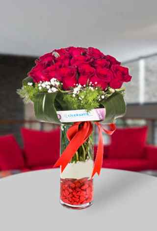 Sevgiliye çiçeklerinden Cam Vazoda 50 K�rm�z� Gül ile Gerçek A�k sevdiklerinize göndermeniz için size özel çiçeklerimizle ile süsledik.
