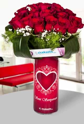 Sizler ve sevdikleriniz için özenle seçilen güllere e�lik eden ye�illik ve cipso ile süslenmi� olan seni seviyorum vazo konseptli çiçe�imiz sizlere sunulur �ekilde sitede bekliyor.Anlaml� sevgi duygular� da çiçeklere e�lik ediyor.