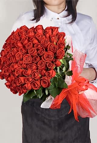 K�rm�z� gül say�s� : 101 adet canl� k�rm�z� gül