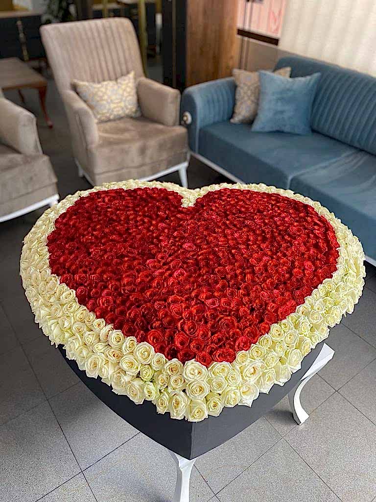 Özenle seçilen k�rm�z� ve beyaz gülleri, Kalpli özel kutuya nak�� nak�� i�liyor, en ufak bir kusuru olmadan mükemmel bir sanat eseri ortaya ç�kar�yoruz.