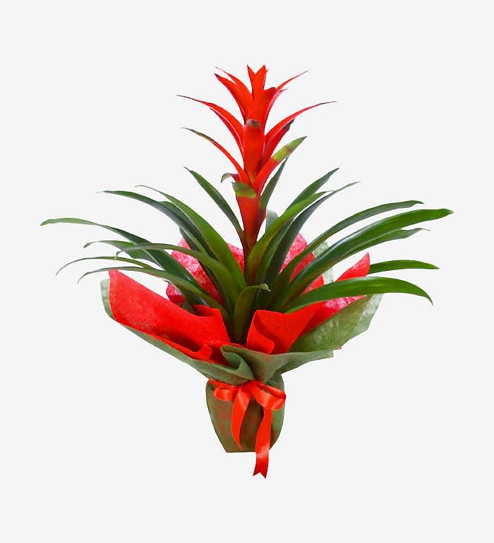 Özenli Sunum: Bitkiniz, görseldeki gibi canl� k�rm�z� ve ye�il ambalaj ka��tlar� ile özenle sar�lm�� ve uyumlu bir kurdele ile ba�lanm��t�r. Bu ��k ambalaj, K�rm�z� Guzmania'y� özel günlerde veya içten bir jest için hediye olarak mükemmel bir seçenek yapar.
