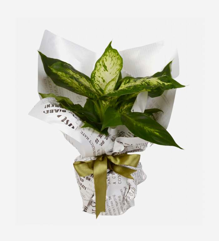 ��k ve Modern Sunum: Bitkiniz, haber ka��d� desenli yenilikçi ambalaj� ve do�al tonlardaki ��k kurdelesiyle paketlenmi�tir. Bu özgün ve ça�da� sunum, Difenbahya'y� s�radan bir hediye olmaktan ç�kar�p, estetik anlay���n�z� yans�tan özel bir jest haline getirir.