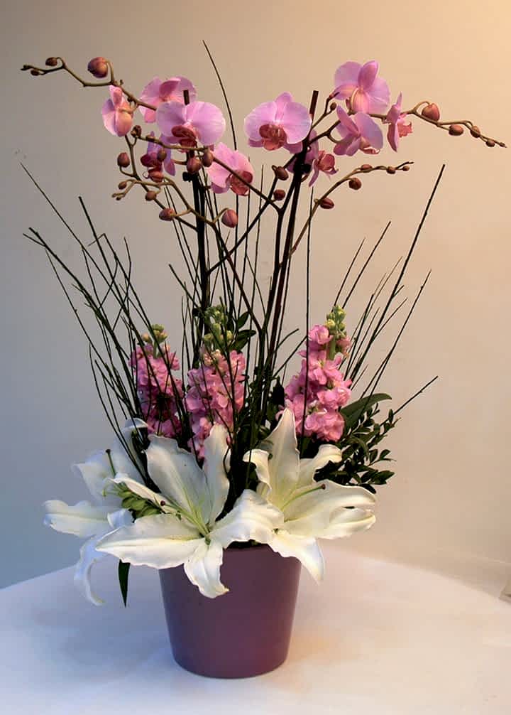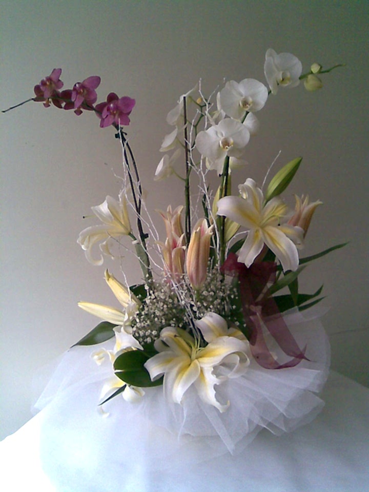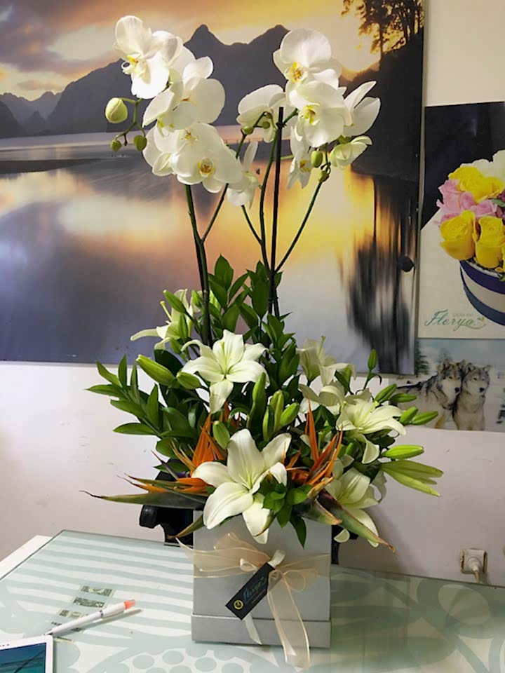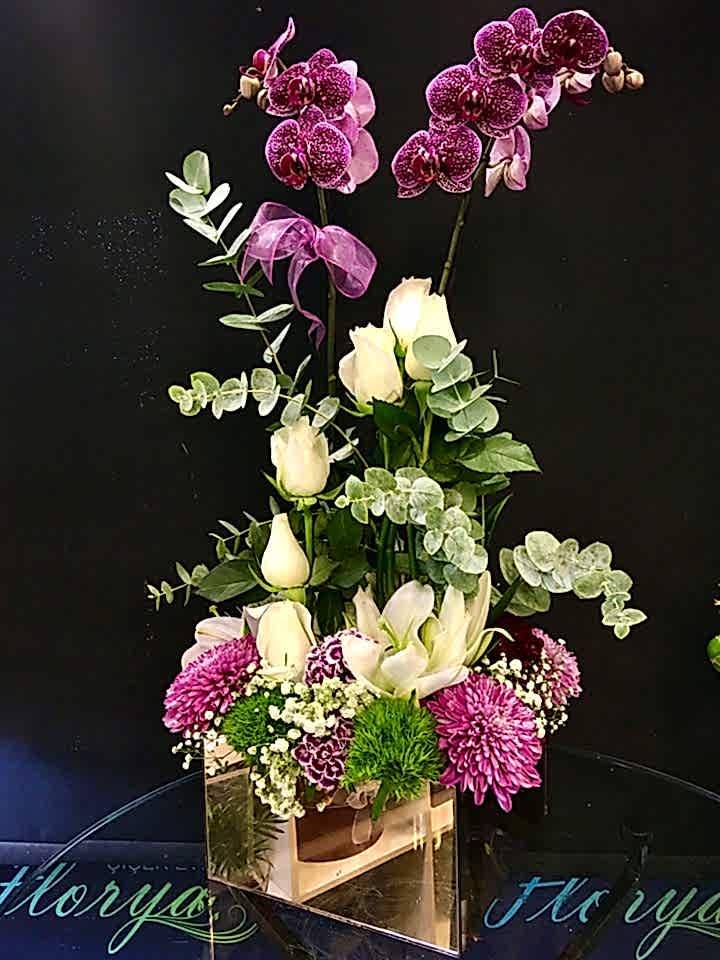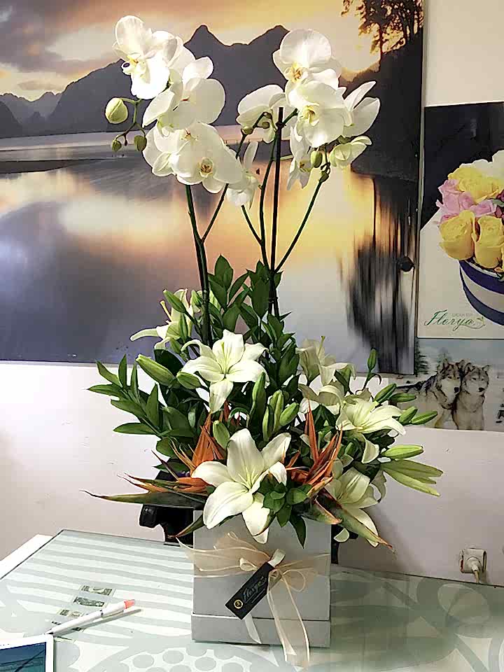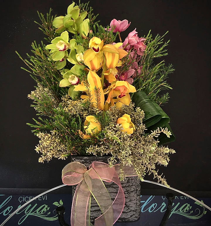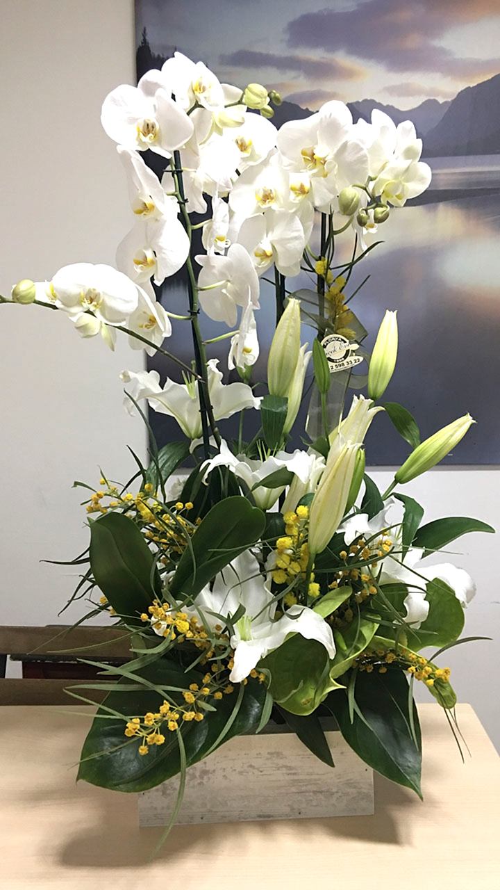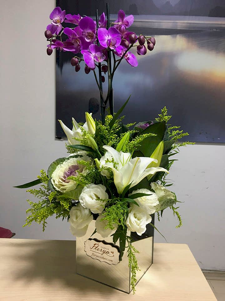 027 Sarı Lilyum & Orkideli Aranjman