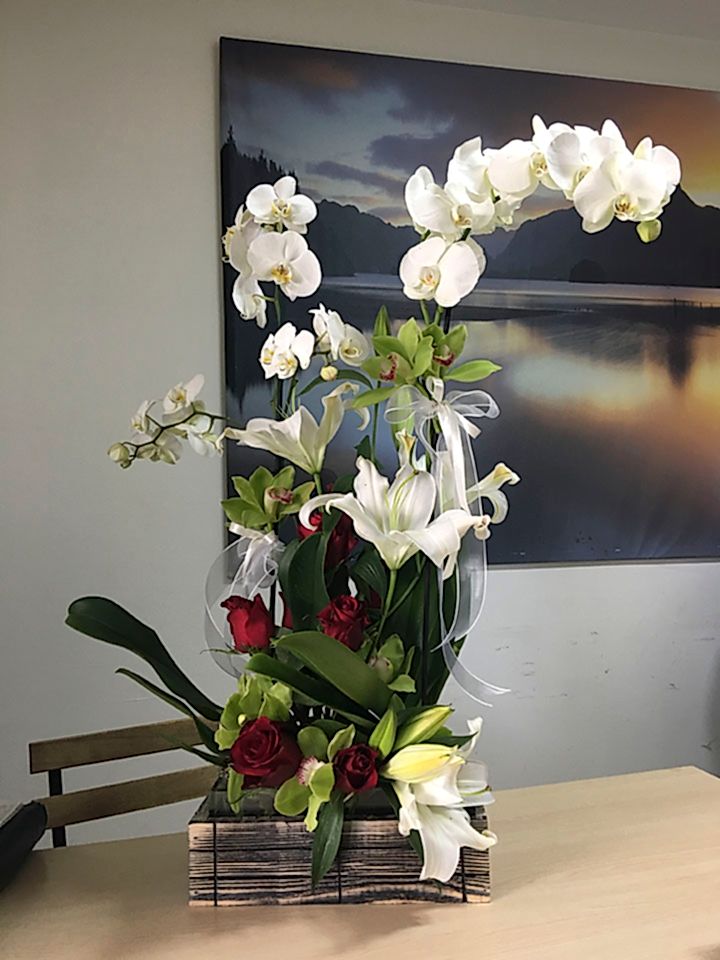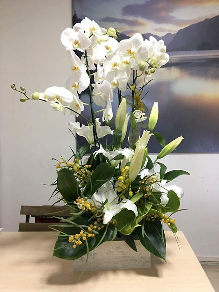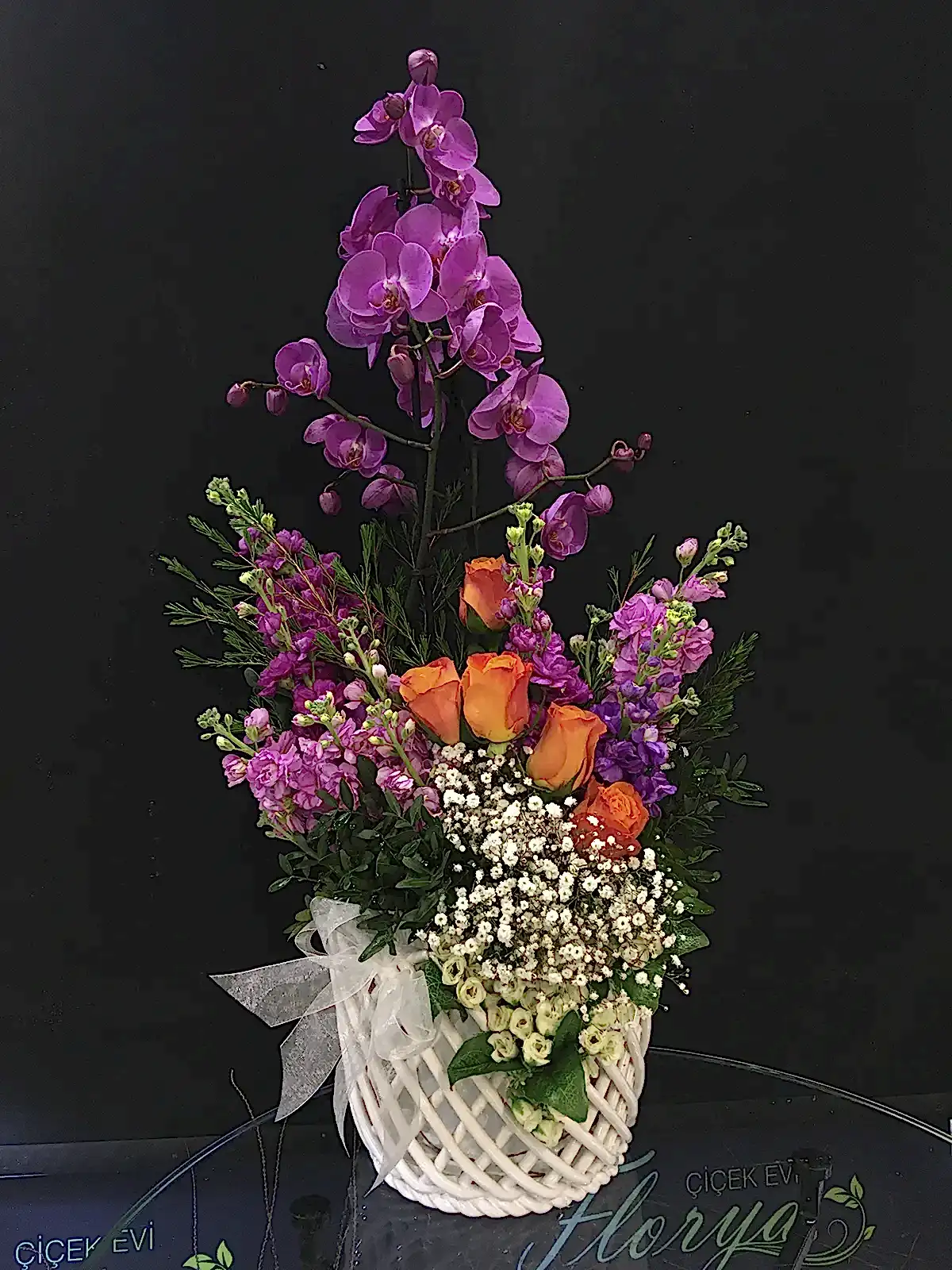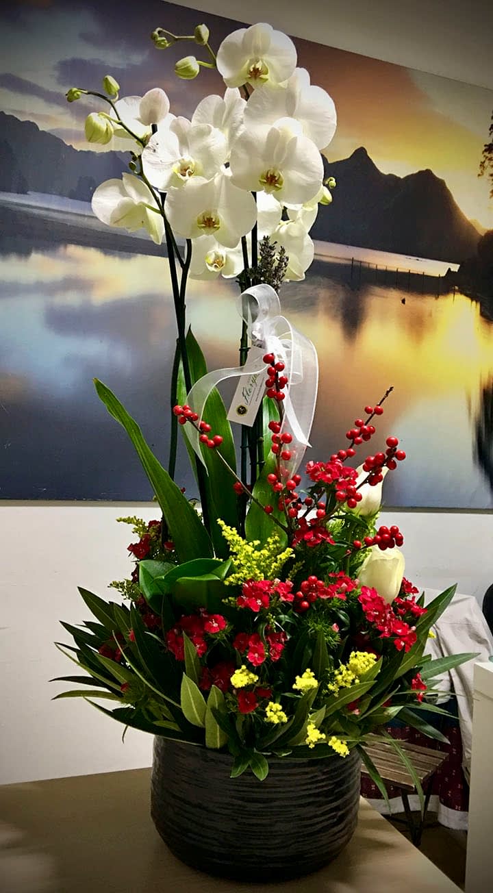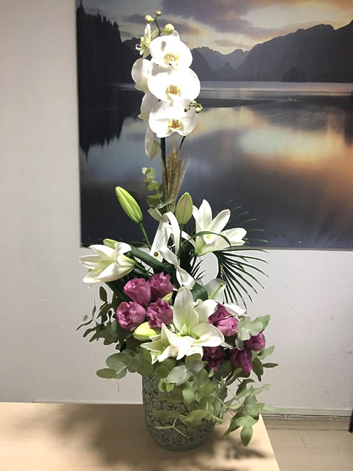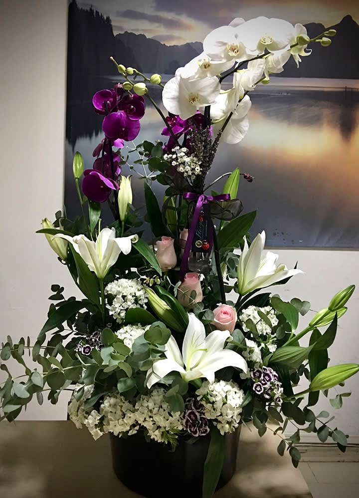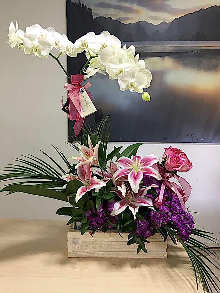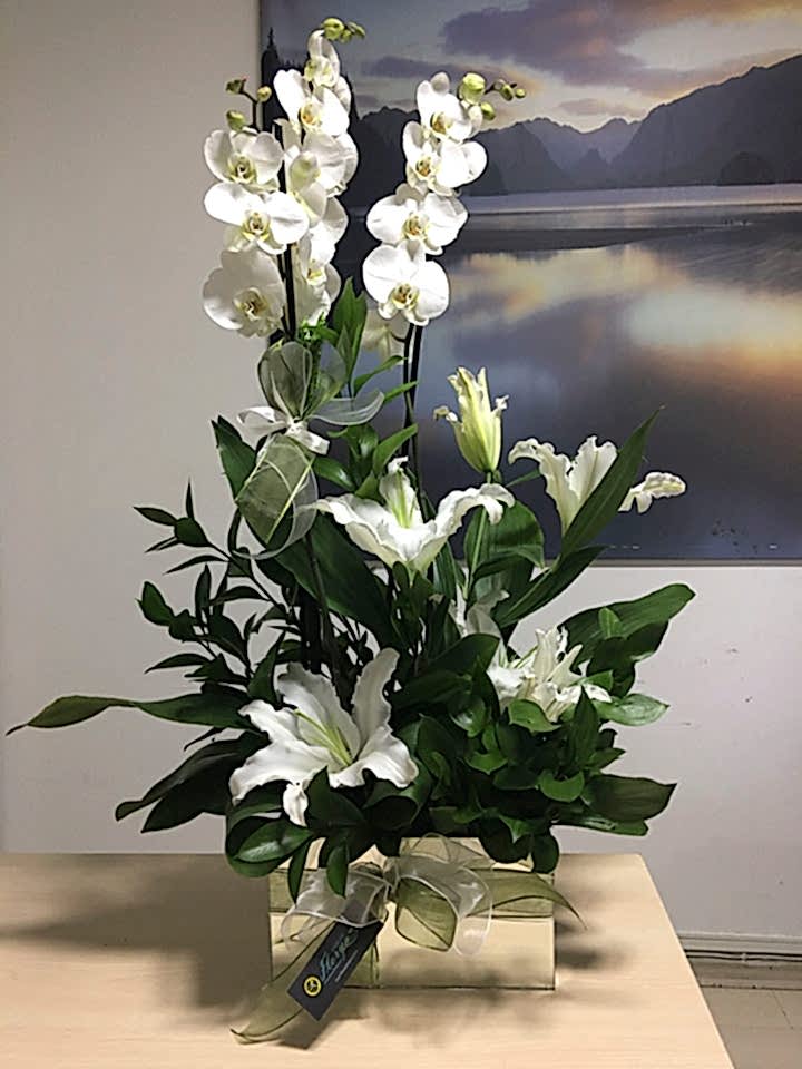 027 Sarı Lilyum & Orkideli Aranjman